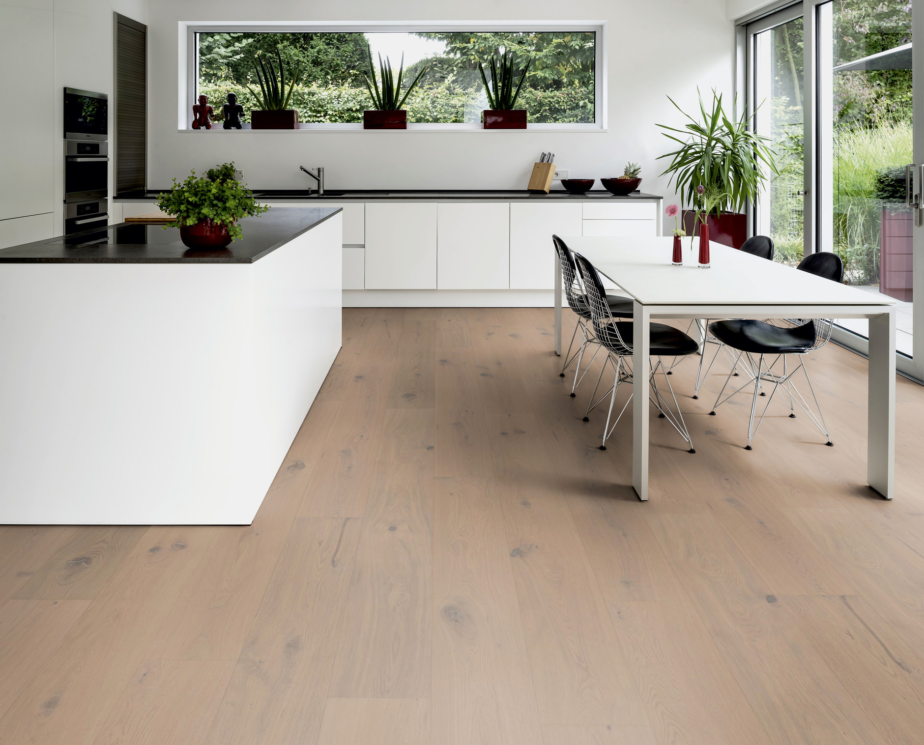 Our oak extra-wide planks in the 2375 x 270 mm format come into their own particularly in larger rooms. Here, as with the wide planks, the extra matt look also underscores the natural appearance of European oak.