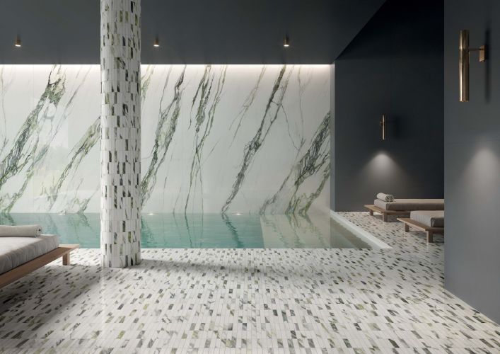 With Charm Experience, Italgraniti embraces a generous eleven sumptuous and scenic ceramic marbles, not just thanks to their elegant textures and refined colours, but also due to the impressive dimensions achieved by the Mega version porcelain stoneware slabs.